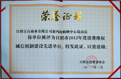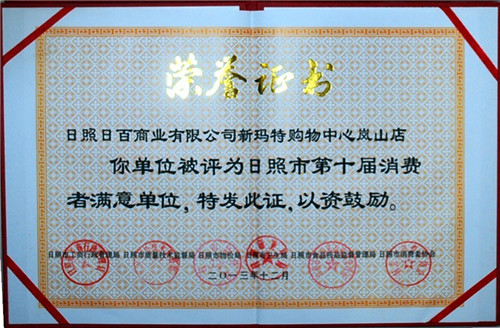 嵐山新瑪特——榮獲日照市第十屆消費者滿意單位